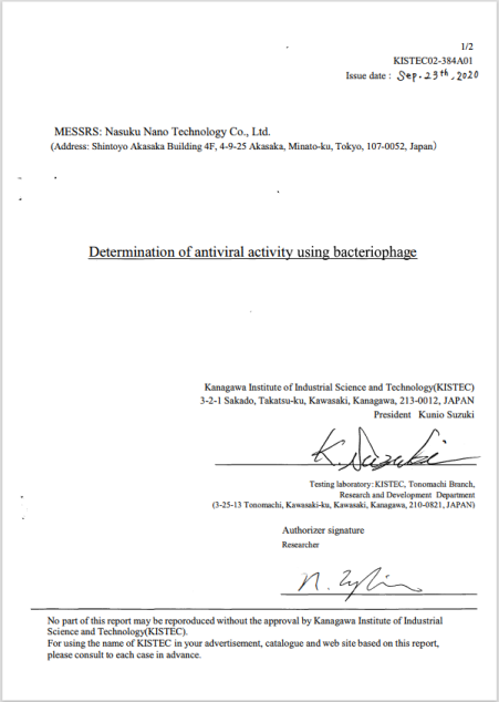 日本實驗證實有效讓病毒不活化,2012年取得報告